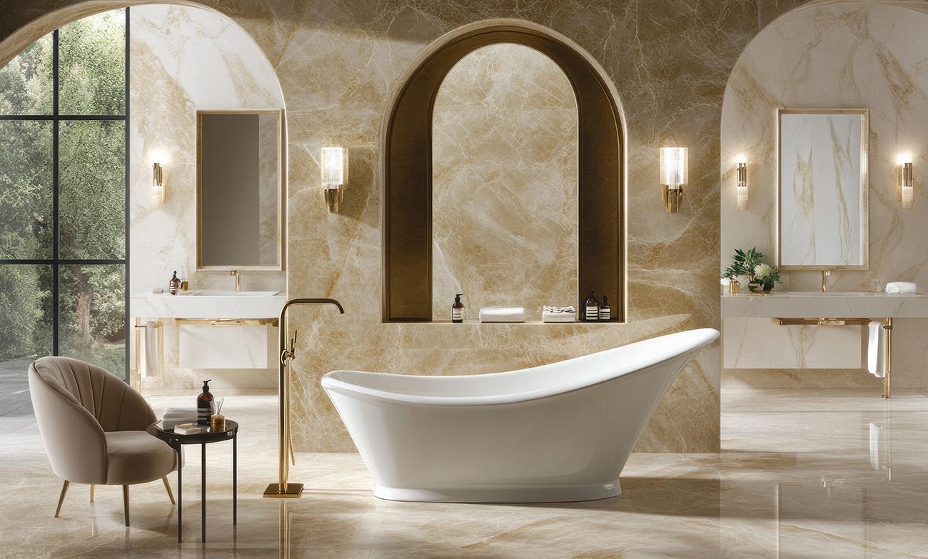 Bold, large-format statement slabs reflect a move toward stone that feels architectural, intentional, and grounded. By minimizing seams and emphasizing scale, these slabs allow natural movement and texture to read continuously across a surface, positioning stone as a primary design element rather than a backdrop.